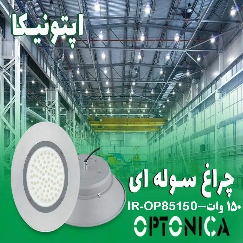 چراغ سولهای 150 وات اپتونیکا با نوردهی قدرتمند و پخش یکنواخت، گزینهای مناسب برای سولهها و سالنهای مرتفع صنعتی است و با مصرف بهینه انرژی، روشنایی پایدار و مطمئن فراهم میکند.